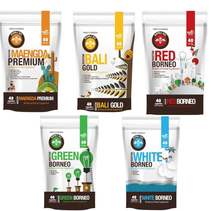 Try Bumble Bee Kratom Capsules 40 ct. People know them for their purity and consistent effects. Bumble Bee Kratom Capsules come from mature kratom leaves. They are clean and effective in every dose.
