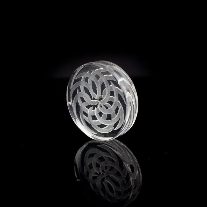This 30mm Disc Carb Cap has slotted air inlets that force the incoming airflow to create a slight vortex spin as the air enters the bucket. This disc carb cap will work well on smaller bangers and e-bangers with a flat top and is very handy to have around. Lay it on top of a banger and give it some rotation as you enjoy your rips!