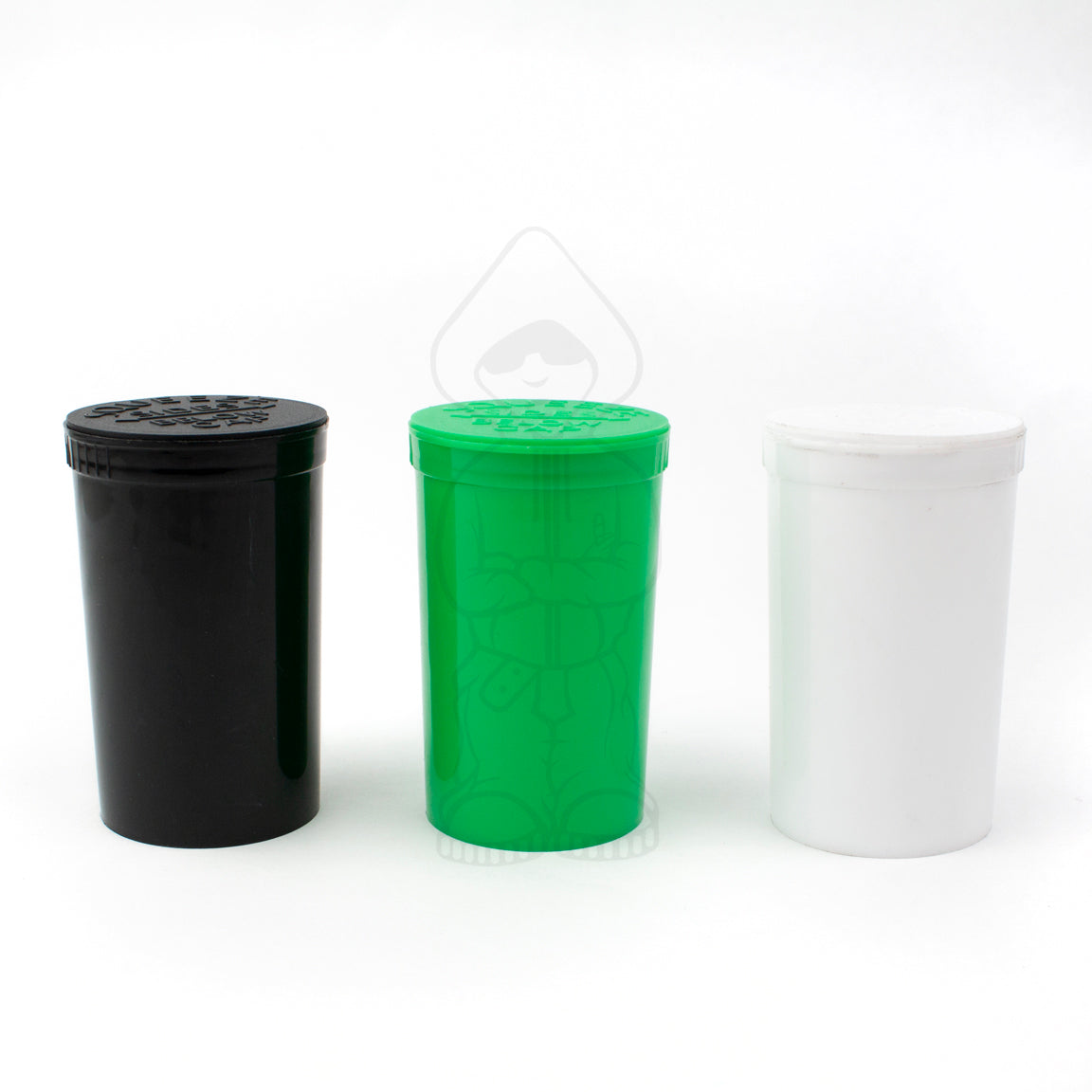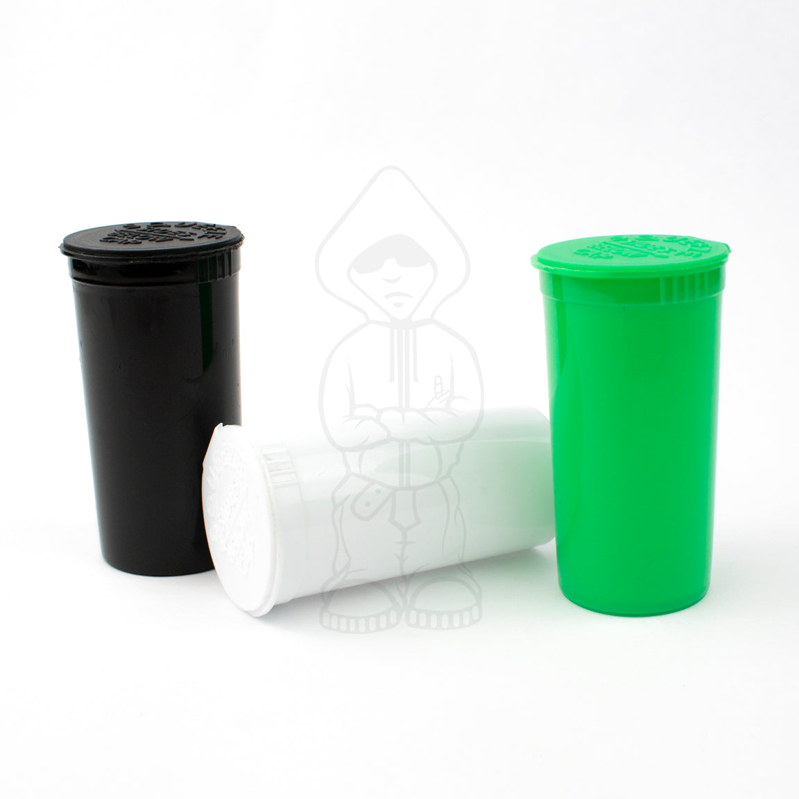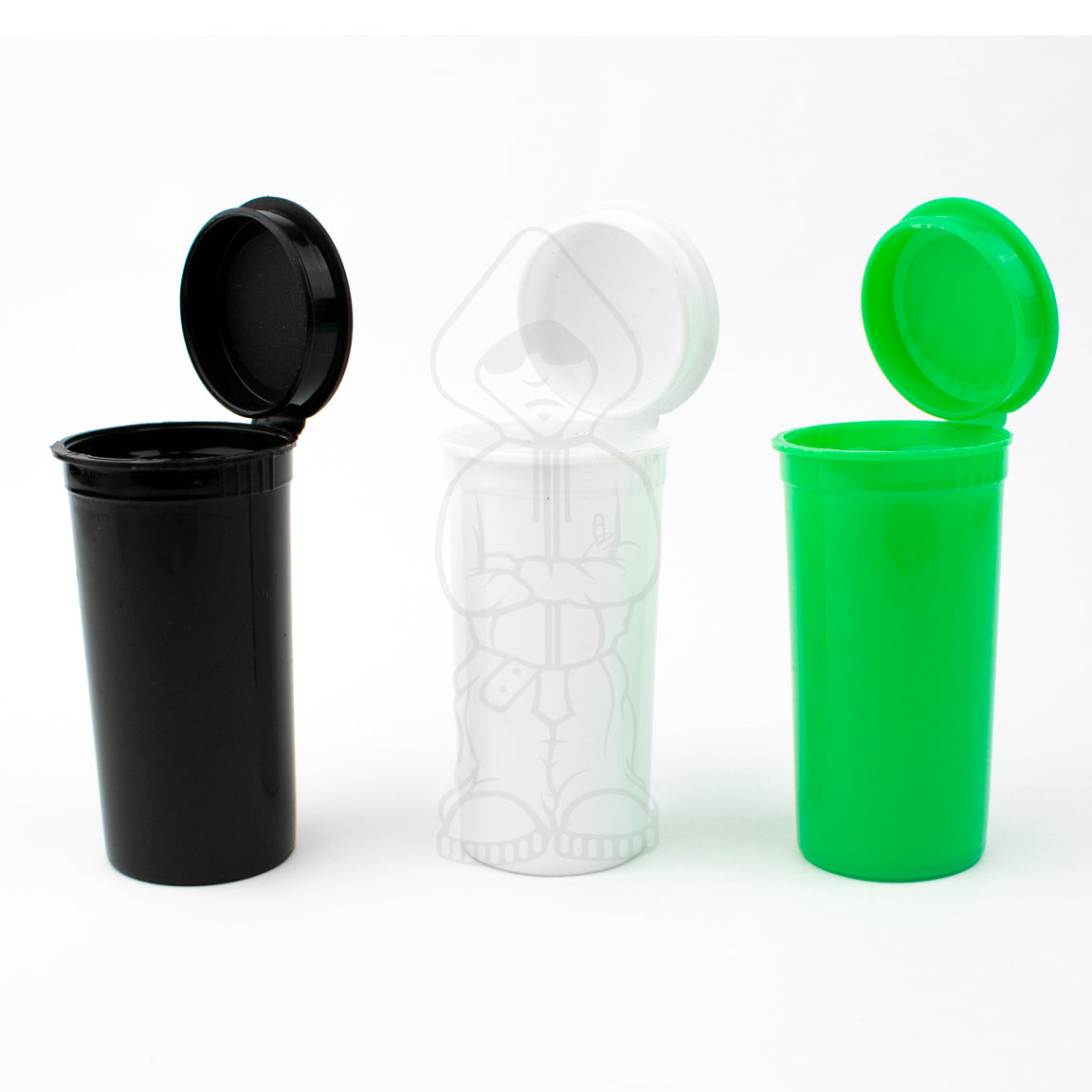 Pop tops and reversible vials are plastic containers so you can store your herbs in there. Depending on which you get, they can be child proof and smell proof.