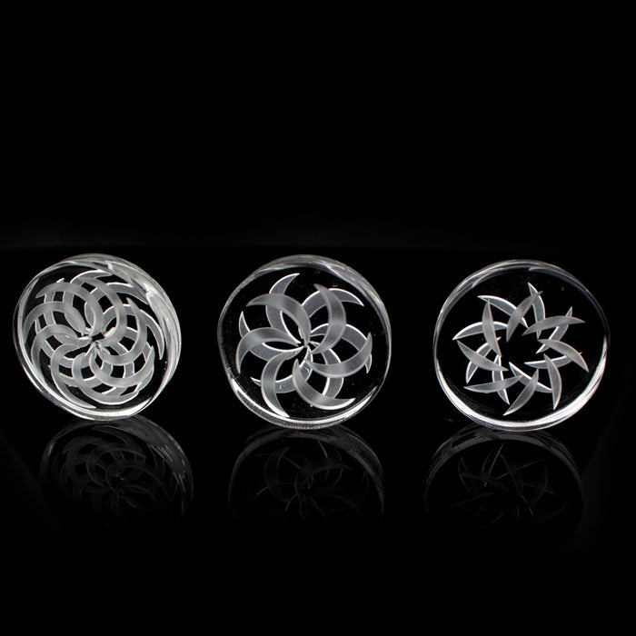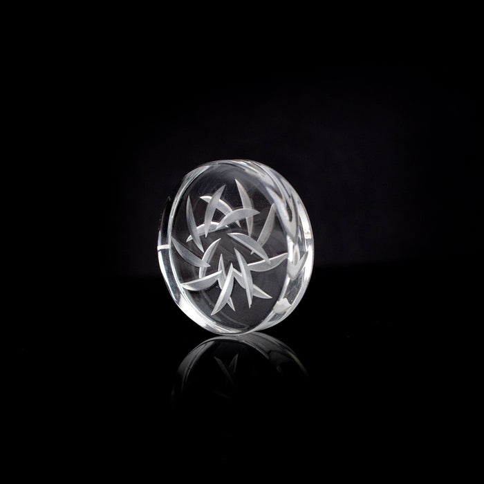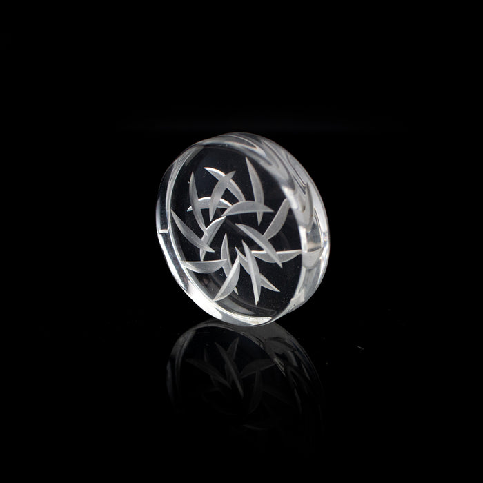 This 30mm Disc Carb Cap has slotted air inlets that force the incoming airflow to create a slight vortex spin as the air enters the bucket. This disc carb cap will work well on smaller bangers and e-bangers with a flat top and is very handy to have around. Lay it on top of a banger and give it some rotation as you enjoy your rips!