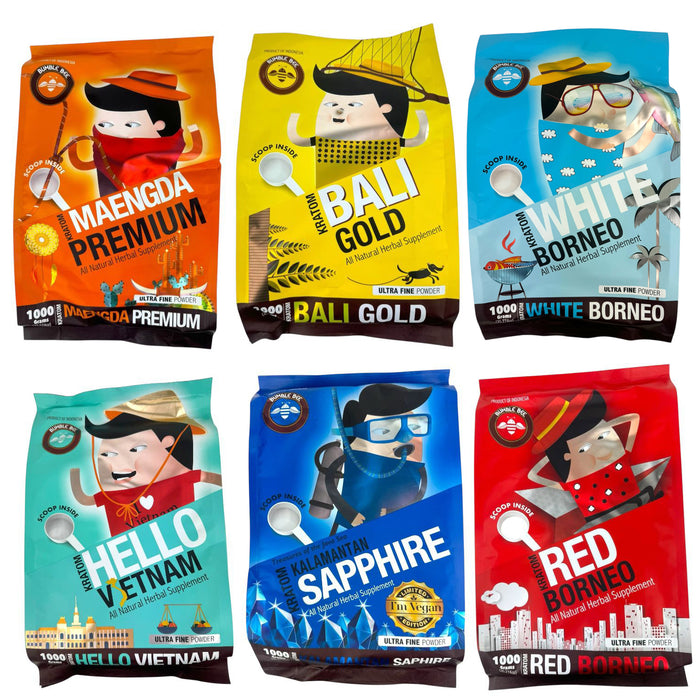 The Bumble Bee Kratom 1000g "bulk" pack is great for personal use or resale and perfect for anyone looking to buy Bumble Bee Kratom wholesale in bulk. Whether powder or even if you want to buy Bumble Bee Maeng Da Kratom Capsules, Bumble Bee is a high-quality, consistent, and reliable brand that is trusted by consumers.