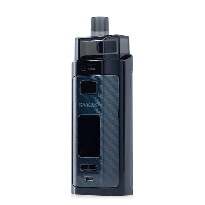The SMOK RPM160 vape kit has a max output of 160 watts. The exterior design is very well done but the overall vape is very lightweight. Each RPM160 vape kit comes with a pod cartridge that gives you 7.5mL of e-liquid capacity. It also comes with two mesh 0.15 ohm coils.